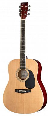 Caraya F630-N - акустическая гитара. Ее корпус формы "дредноут" генерирует громкий, пробивной звук, который получает ясность и открытость тона благодаря ели, использованной для верхней деки и дополняется липой, которая присутствует в обечайке и нижней деке. Среди особенностей инструмента можно выделить естественную отделку и резной черный пикгард. Гриф с кленовой накладкой оснащен 20 ладами. Внешний вид инструмента дополняется блестящей хромированной фурнитурой.