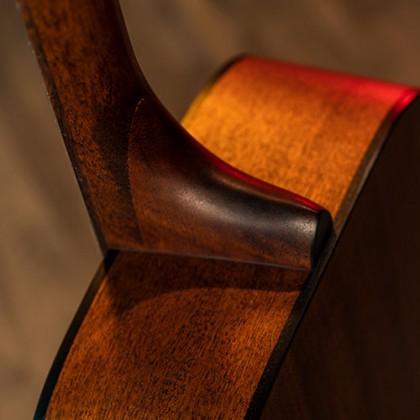 Прочное соединение, выполненное опытными мастерами ласточкин хвост передает вибрацию и резонанс корпуса гитары грифу без потерь энергии.