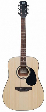 Акустическая гитара Jet JD-255 изготовлена на фабрике в Индонезии, и несмотря на свою невысокую цену, имеет хорошее качество сборки и объёмный звук, характерный для дредноутов. Верхняя дека гитары выполнена из ели, задняя дека, обечайки и гриф – красное дерево. Накладка сделана из необычной древесины мербау, которая настолько прочная, что в некоторых странах используются в строительстве, а также производстве лодок-каноэ и народных музыкальных инструментов. Выпускается акустическая гитара Jet JD-255 в трёх цветах: санбёрст, чёрный и натуральный, - два варианта из трёх мы покажем в нашем видеообзоре этого недорого дредноута!