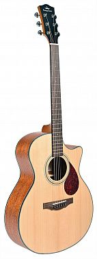 KEPMA F0 – это акустическая гитара с превосходным соотношением цены и качества, пользующаяся большой популярностью у музыкантов. Эргономичная форма корпуса Grand Auditorium предлагает комфорт при игре как сидя, так и стоя. Верхняя дека модели F0 сделана из массива ситхинской ели, обеспечивая красочное и яркое звучание инструмента. Корпус из красного дерева придает звуку теплоту и объем. Чистое и яркое звучание KEPMA F0 с мощными средне-низкими частотами делает эту гитару прекрасным решением для записи и живых выступлений.