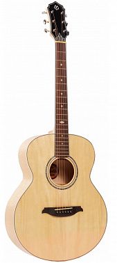Акустическая гитара MOLLO SJ-60NA может похвастаться глубоким, резонирующим звуком, идеально подходящим для игры боем и ритма, что делает ее фаворитом среди музыкантов, ищущих мощное звучание и универсальные возможности для исполнения. Объемный корпус джамбо обеспечивает напористый звук, подходящий для выразительной игры аккордами. Нижняя дека и обечайки из волнистого клёна, а также верхняя дека из массива ели обеспечивают выразительные верхние частоты с молниеносным откликом и длительным сустейном. Это делает инструмент идеальным для вокального аккомпанемента, но он также отлично подходит для сольной игры. Помимо прекрасного звучания этот инструмент впечатляет удобством игры, благодаря кленовому грифу, который удобно лежит в руке и верхнему порожку шириной 43 мм. Благодаря большому вырезу, все 20 ладов накладки из палисандра легко воспроизводятся, а колки с открытой механикой гарантируют высокую стабильность строя. Эта гитара также способна покорить своим визуальным обликом. Текстура древесины идеально подчёркнута глянцевым покрытием, а пламенные узоры волнистого клёна, идущие перпендикулярно волокнам, создают захватывающий дух рисунок.