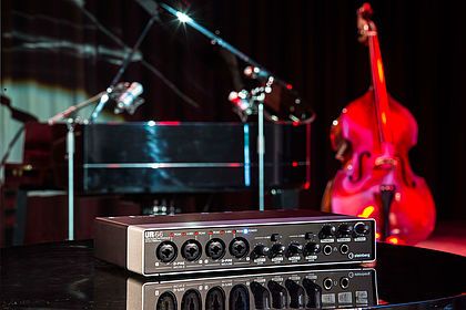 STEINBERG UR44 – это не просто USB-аудиоинтерфейс, а целая продакшн-студия на 6 входных и 4 выходных канала. Девайс оснащён четырьмя микрофонными предусилителями класса А - D-PRE от Yamaha. Эти четыре комбовхода также снабжены фантомными питанием. Кроме того, UR44 имеет MIDI-выходы, СС-режим для подключения iPad, гитарные, вокальные пресеты и мониторинг без задержек на базе DSP-процессора. Кстати, в комплекте с девайсом вы получаете ещё и программное обеспечение Cubase AI. Смотрите наш обзор, в котором мы подробнейшим образом рассмотрим USB-аудиоинтерфейс STEINBERG UR44 со всех сторон, а также протестируем его на вокале с гитарным аккомпанементом!
