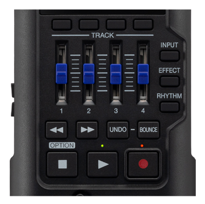 С R4 вы сможете записывать до четырех дорожек, сводить их и отправлять результат на выделенный «bounce-трек» (отскок). Таким образом, вы освобождаете дорожки, чтобы можно было продолжать наслаивать звуки на композицию.