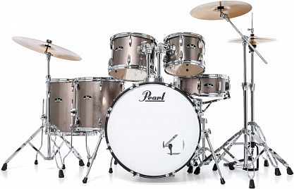 Комплектация: 22" х 16" бас-барабан, 10" х 8" том, 12" х 9" том, 14" х 5,5" малый барабан, 16" х 16" напольный том, 14" х 14" напольный том, прямая стойка для тарелки, стойка для тарелки журавль, стойка Hi-Hat, стойка для малого барабана, педаль, стульчик, два держателя тома, барабанные палочки, чехол для палочек, постер Pearl Drum