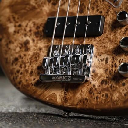 Легкий бридж FCH (Full Contact Hardware) от Babicz обеспечивает увеличенный динамический диапазон, улучшенный сустейн и стабильность интонации. Двойная фиксация седел гарантирует, что высота струн и отстройка интонации останутся непоколебимыми даже при снятии струны.