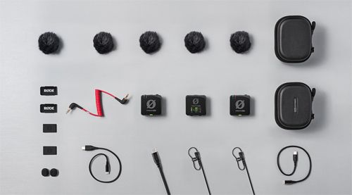 Wireless PRO поставляется со всем необходимым для настройки и записи звука. В комплект входят два профессиональных микрофона Lavalier II, которые идеально подходят для записи актеров, а также меховые ветрозащиты для использования на открытом воздухе, пара MagClip GO для крепления передатчиков в любом месте, чехол для зарядки микрофонов и удобный набор аксессуаров (кабели, зажимы, чехлы и т.д).