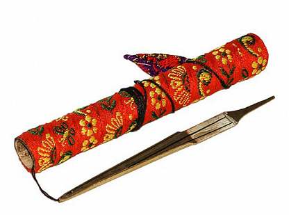 Дан мои FDM-2 Standard - по звучанию это высокий варган, в то же время он универсален - на нем одинаково просто будет сыграть и ритм, и мелодию, а также он прост в управлении, соответственно подойдет для и начинающих. Изготовлен из латуни и комплектуется бамбуковым чехлом, покрытым яркой тканью.