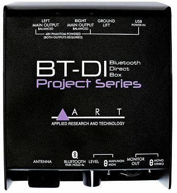 BT-DI позволяет подключать аудио по Bluetooth® к микшеру, системе звукоусиления или аудиоинтерфейсу. Это прочное устройство с простым управлением. Удерживайте кнопку Bluetooth, чтобы подключить или отключить устройство. Переключатель на передней панели позволяет выбрать фиксированную громкость на Main выходах или регулируемую с помощью регулятора Level, который также управляет выходом монитора. Выход Monitor может переключаться между режимами моно и стерео, и поддерживает подключение наушников и линейный уровень. Разъем Ground Lift на задней панели устраняет помехи заземления при подключении BT-DI к компьютеру. Разъёмы XLR поддерживают фантомное питание, поэтому внешний адаптер не требуется. Устройство также может питаться через шину USB или через адаптер 5 В 80 мА (не входит в комплект). Благодаря радиусу действия до 30 метров, BT-DI упрощает интеграцию беспроводного аудио в вашу звуковую систему.