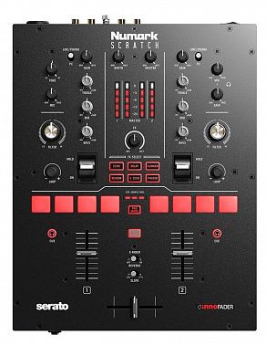 Numark Scratch — это 24-битный двухканальный микшер, который меняет представление о возможностях доступного двухканального скратч-микшера. Данная модель предлагает диджеям все необходимые функции для эффективного скретчинга, воспроизведения и сведения треков между собой, а также несколько возможностей для интересных и эффектных выступлений.