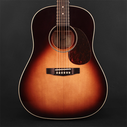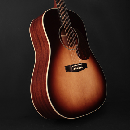 Классическая форма корпуса дредноут с покатыми «плечами» воспроизводит сильное звучание с мощным басом, живой серединой и чистыми верхними частотами. Эта гитара придется по вкусу музыкантам, играющим пальцами и любителям традиционных гитарных форм и звучаний. Покатые плечи придают гитаре винтажности.