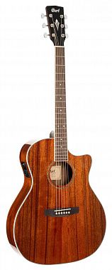 Cort GA-DAO NAT — это электроакустическая гитара, которая сочетает в себе традиционное мастерство и использование экзотических материалов. Корпус модели выполнен в форме Grand Auditorium с вырезом, что обеспечивает удобный доступ к верхним ладам, позволяя комфортно играть даже в высоких регистрах. Верхняя дека изготовлена из древесины дао, которая обладает ярким звучанием и чёткими высокими частотами. Задняя дека и обечайка также сделаны из дао, что помогает усилить басы и низкие частоты, придавая звуку более глубокий и насыщенный характер.