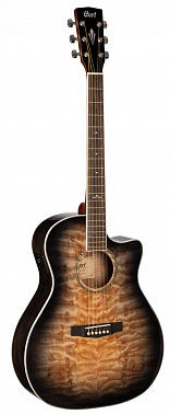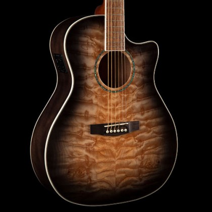 GA-QF — это еще одно дополнение к успешной серии Grand Regal. Верхняя дека гитар изготовлена из фигурного клена, что делает их внешний вид роскошным, а также балансирует звуковые характеристики корпуса гранд аудиториум. Завершают картину задняя дека и обечайка из красного дерева и электроника Fishman Presys I, при этом гитара остается удивительно доступной.
