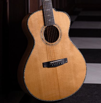 Кленовый гриф обеспечивает более яркое и пробивное звучание, чем гриф из обычного материала, такого как красное дерево, а накладка на гриф из черного дерева обеспечивает четкое и отзывчивое звучание в сочетании с акустическим резонансом корпуса.