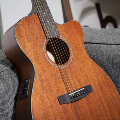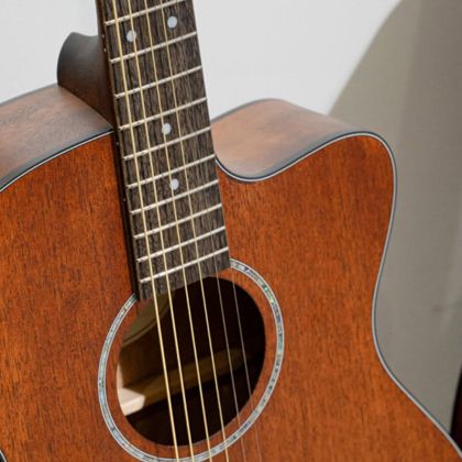 Форма корпуса Orchestra отличается уменьшенной глубиной и довольно узкой талией, что делает инструмент особенно удобным для гитаристов небольшого роста, а также для тех, кто предпочитает фингерстайл или легкий аккомпанемент. Благодаря цельной верхней деке из красного дерева, обеспечивающей тёплое звучание, и встроенной электронике для подключения, L60MCE представляет собой исключительную ценность для музыкантов любого уровня подготовки.