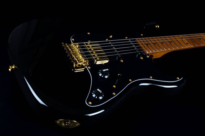 Гриф и накладка на гриф выполнены из печеного клена (roasted maple). При такой обработке поры дерева максимально сжимаются и в процессе использования вода уже не будет выходить, ваша накладка не сожмется и лады не повылазят вне зависимости от влажности и смены температуры. Плюс такое дерево выглядит очень красиво.