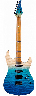 Электрогитара Jet JS-480 TBL выглядит будто вышла из пены морской, топ из тигрового клена имеет покрытие с градиентом от белого к голубому и, действительно, напоминает песчаное дно моря на мелководьи, Средиземного, Красного, Карибского… или какого-то еще моря по вашему вкусу. Дека гитары выполнена из красного дерева, гриф - запеченный клен. На JS-480 установлен универсальный набор датчиков (хамбакер и два сингла), ручка тона, регулятор громкости и пятипозиционный переключатель звукоснимателей, - перед нами суперстрат с фиксированным бриджем и локовыми колками, что не может не радовать. Смотрите на нашем канале обзор электрогитары Jet JS-480 TBL серии JET 1000!