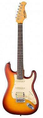 Конфигурация звукоснимателей: хамбакер и два сингла, при этом хамбакер обеспечивает более высокий выходной уровень, идеально подходящий для сильного насыщения без помех.