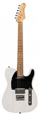STAGG SET-PLUS – шестиструнная винтажная электрогитара серии «T» в корпусе типа «телекастер» в красивой глянцевой белой отделке. Ее корпус целиком выполнен из массива павловнии. Гриф на болтовом креплении с легким доступом к последним ладам обладает матовой отделкой и сделан из клена с накладкой из клена. У гитары 22 лада, маркеры ладов выполнены в виде точек.
