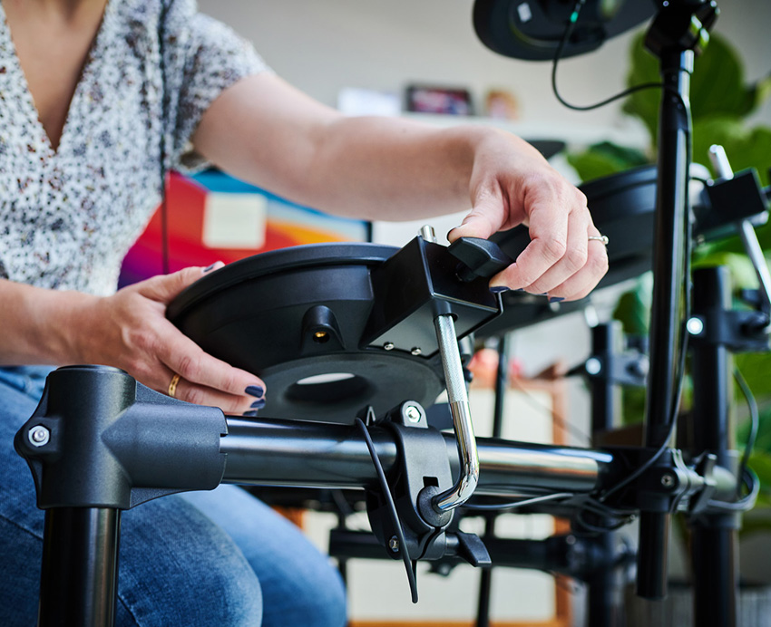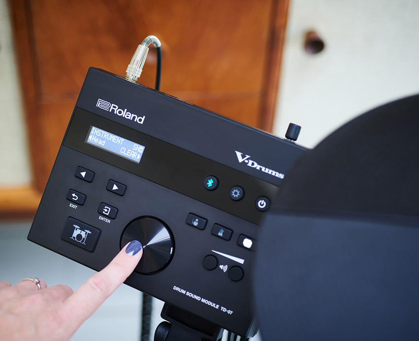 Просто сядьте за установку ударных и вы обнаружите множество пресетных наборов ударных, которые буквально заставят вас начать играть. А когда будете готовы к большему, погрузитесь в исследование огромной библиотеки звуков ударных ― меняйте малые барабаны, смешивайте томы, экспериментируйте с различными бас-барабанами, тестируйте крэши и райды. Можно даже настраивать ударные, добавлять демпфирование, чтобы сделать звук мягче, изменять акустику помещения, в котором располагается установка ударных, или стать на время звукоинженером и настроить звучание с помощью специализированных эквалайзеров звукового модуля TD-07.