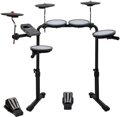 Конфигурация: 1 х пэд малого барабана; 3 х пэд том барабана; 1 х контроллер-педаль бас-барабана; 1 х контроллер-педаль хай-хэт; 1 х пэд крэш тарелки; 1 х пэд райд тарелки; 1 х цифровой модуль; рама; держатели для тарелок; блок питания; коммутация