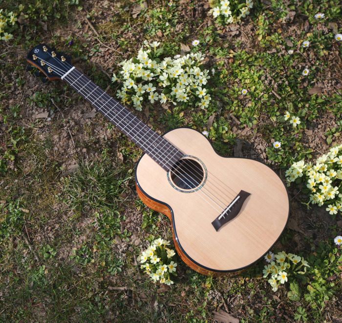 - Сочетание корпуса из палисандра с верхней декой из цельной древесины ели дает глубокое и теплое звучание на средних и низких частотах, и чистый и яркий звук на высоких нотах