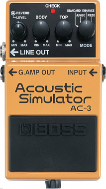 Гитарная педаль BOSS AC-3 эмулирует звучание акустической гитары. В отличие от аналогичных эффектов в дешёвых процессорах, эта модель выдаёт действительно реалистичное звучание и вполне способна заменить дополнительный инструмент на концерте (в студии разница, конечно, будет слышна). BOSS AC-3 оборудована двумя ручками настроек тона и переключателем четырёх режимов звучания: Standard, Jumbo, Enhanced и Piezo. Полезнейшая вещь при работе на сцене – два выхода, один из которых можно подключить к цепи эффектов электрического звука, а второй – в линию с эмуляцией акустики, чтобы иметь возможность быстро переключаться между ними. Также, педаль BOSS AC-3 имеет на борту встроенный ревербератор. Послушайте её звук в нашем видео!