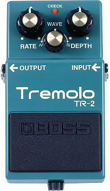 TR-2 Tremolo воспроизводит классические тремоло эффекты. Представляет собой легкоуправляемую компактную педаль. Ручки “Wave”, “Rate”, “Depth” для создания различных звуковых эффектов