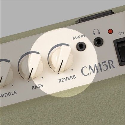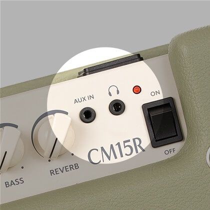 Вход AUX позволяет подключить к комбоусилителю смартфон или цифровой плеер и играть вместе с вашей любимой музыкой. Разъем для наушников удобно использовать для вечерних занятий, что делает CM15R универсальным комбиком, который можно использовать в различных игровых ситуациях.