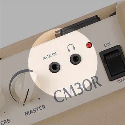 Вход AUX позволяет подключить к комбоусилителю смартфон или цифровой плеер и играть вместе с вашей любимой музыкой. Разъем для наушников удобно использовать для вечерних занятий, что делает CM30R универсальным комбиком, который можно использовать в различных игровых ситуациях.