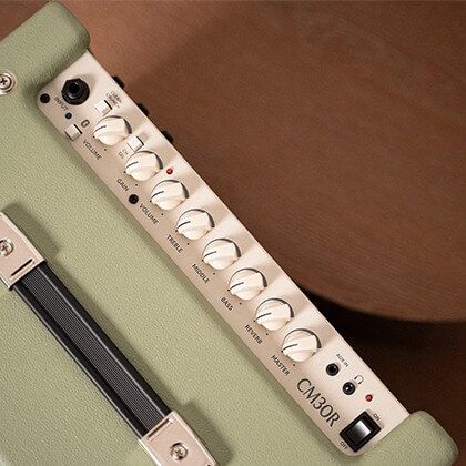 Комбик CM30R предлагает широкий диапазон чистого и перегруженного звучания с кристально чистым каналом Clean и насыщенным каналом Overdrive с независимыми регуляторами усиления и громкости и трехполосным эквалайзером с регуляторами высоких, средних и низких частот, специально разработанным для тонального диапазона электрогитары. Контроль усиления обеспечивает широкий диапазон перегрузки от блюзового кранча до зашкаливающего современного дисторшена. Каналы переключаются с помощью кнопки, что делает CM30R еще более универсальным.