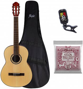 В комплекте: классическая гитара ALMIRES C-15 OP, чехол для гитары FLIGHT FBG-1005, хроматический тюнер FLIGHT FTC-33, струны для классической гитары ERNIE BALL 2409