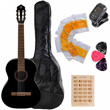 FLIGHT C-120 BK PACK – это комплект с классической гитарой черного цвета и набором необходимых аксессуаров.