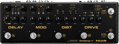 NUX NME-3 CERBERUS – это процессор гитарных эффектов с гибкой маршрутизацией, который имеет четыре блока эффектов: дилей, модуляция, дисторшн и овердрайв, в каждом блоке присутствует по четыре типа обработки. Кроме того, здесь есть эмуляция кабинетов, возможность загрузки собственных импульсов (IR), 5-pin MIDI in/out для использования девайса в качестве миди-контроллера, send/return для подключения дополнительных педалей эффектов и 32 банка по 4 пресета, в том числе для сохранения пользовательских настроек. Смотрите на нашем канале обзор гитарного мультиэффекта NUX NME-3 CERBERUS!