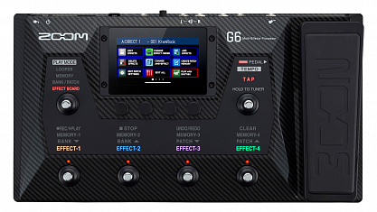 G6 также предоставляет полноценную коллекцию легендарных гитарных эффектов и звуков от Zoom, включая совершенно новые эффекты Distortion и Modulation.