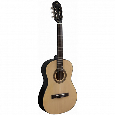 VESTON C-45A 3/4 – компактная версия классической акустической гитары с мягкими нейлоновыми струнами. Эта модель уменьшенного форм-фактора 3/4 идеально подойдёт для юных музыкантов, детей от восьми лет и подростков, обучающихся игре на гитаре дома или в музыкальной школе. Такой небольшой инструмент также удобен для поездок и путешествий, его легко носить с собой, чтобы играть в любом месте. Гитара производится из качественных материалов и обладает красивым звучанием. Верхняя дека и корпус VESTON C-45A 3/4 сделаны из древесины агатиса. Гриф – из клёна, накладка – из синтетического черного дерева. На грифе 20 ладов без инкрустации. Благодаря небольшому размеру играть на этом инструменте очень удобно. Нейлоновые струны лучше всего подходят для обучения, регулируемый анкер позволит настроить высоту струн и сделать игру более комфортной. Представленная модель классической гитары элегантно выглядит в натуральном цвете дерева с глянцевой лакированной отделкой и хромированной фурнитурой.
