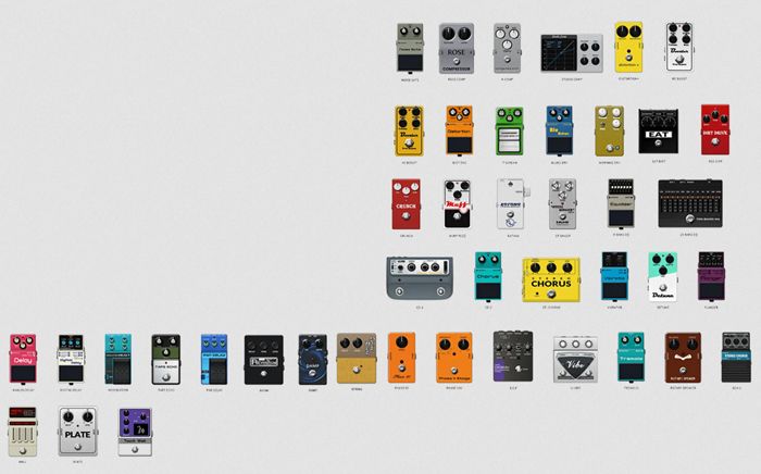 • 43 доступных эффекта – блоки эффектов GATE, COMP, EFX, AMP, EQ, MOD, DLY, RVB со свободным, полностью маршрутизируемым порядком