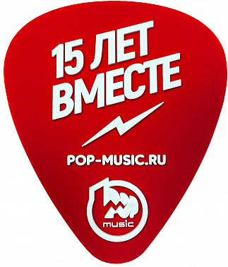 Магнит в виде медиатора " 15 лет вместе с POP-MUSIC.ru"