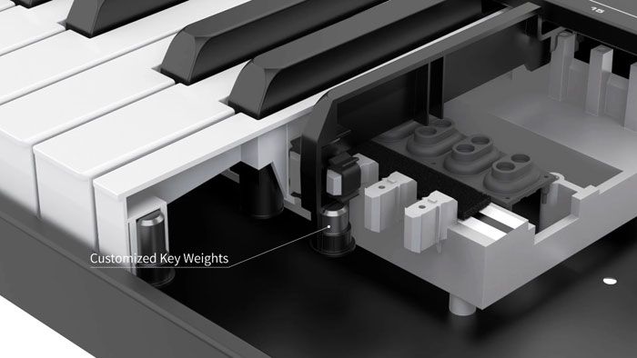• Чувствительные к силе нажатия пэды и полувзвешенные клавиши с послекасанием