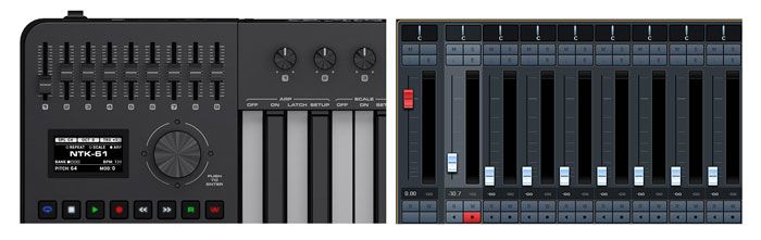 Все три варианта миди-контроллеров NUX NTK, на три, четыре и пять октав оснащены полноразмерными клавишами с послекасанием, колесами питча и модуляции, а также девятью фейдерами и тачпадом для управления компьютером совсем без мыши. В то же время у моделей есть различия, заключающиеся не только в количестве клавиш. Так NTK-49 имеет дополнительно 8 энкодеров, а NTK-61 – 8 энкодеров и 8 чувствительных к силе нажатия пэдов. Таким образом, вы можете выбрать именно ту миди-клавиатуру, которая вам необходима, не переплачивая за ненужные функции. Смотрите на нашем канале обзор миди-клавиатур NUX NTK!
