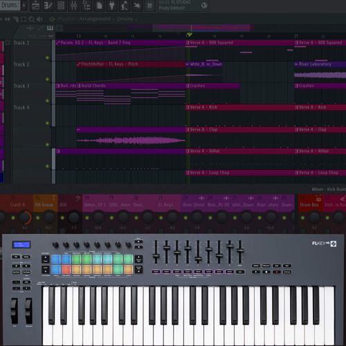 FLkey 49 — это идеальная MIDI-клавиатура, адаптированная для работы в FL Studio. Получайте мгновенный доступ к таким функциям, как Sequencer, Channel Rack и Mixer, расширяйте свои творческие возможности с помощью режимов Scale и Chord и другими возможностями. Благодаря 49 клавишам, 16 чувствительным к скорости нажатия пэдам, девяти 45 мм фейдерам, восьми настраиваемым потенциометрам и контроллерам транспорт, FLkey 49 располагает всем необходимым именно там, где нужно, — чтобы вы могли оставаться в ритме.