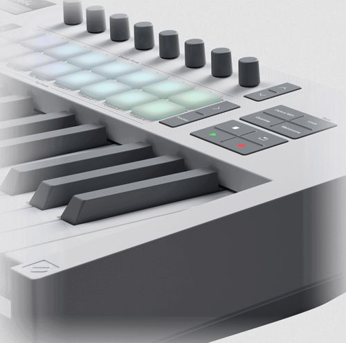 49 полувзвешенных клавиш фортепианного типа с элегантным серо-белым покрытием сочетают в себе мощь программного обеспечения и ощущение работы с премиальным аппаратным инструментом. Разделите клавиатуру на две зоны или наложите два MIDI-канала на все клавиши.