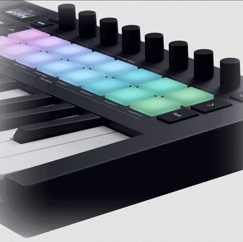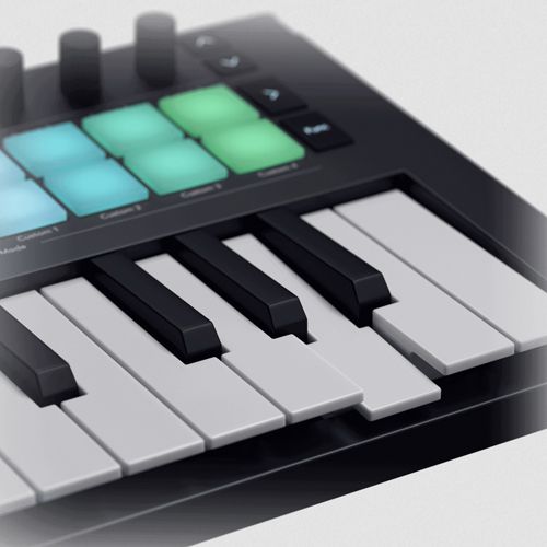 Launchkey Mini 25 — это мощный DAW контроллер с двумя октавами мини-клавиш синтезаторного типа, восемью энкодерами и 16 чувствительными к силе нажатия пэдами для игры на ударных и инструментах, а также для запуска клипов. Встроенные режимы Creative Chord и Scale работают в паре с OLED-дисплеем, что позволяет легко оставаться в тональности.