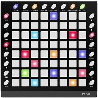 Тип: MIDI пэд-контроллер, 64 чувствительных к силе нажатия пэдов со светодиодной подсветкой, 24 назначаемых кнопки