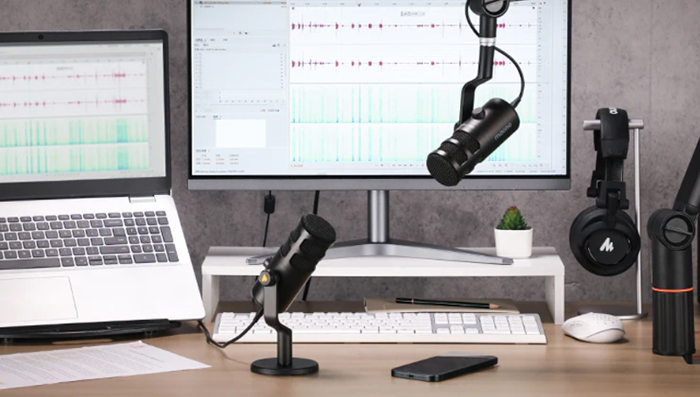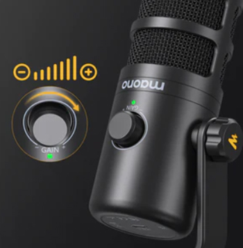 MAONO PD100U имеет кардиоидную диаграмму направленности для снижения фонового шума для чистого аудио, и оснащен выходом USB Type-C для подключения к компьютерам и телефонам. Цельнометаллическая конструкция микрофона обеспечивает превосходную экранирующую производительность и долгий срок службы. Ручка Gain позволяет с легкостью регулировать уровень усиления микрофона. Микрофон идет в комплекте с металлической настольной подставкой. С ее помощью он легко устанавливается на столе, причем в процессе работы можно менять угол наклона микрофона и фиксировать его в удобном для пользователя положении. Без подставки микрофон крепится к микрофонным стойкам или пантографам, обладающим совместимой резьбой 5/8’’.