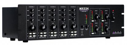 MX524 — полнофункциональный зонный микшер с пятью входными каналами и четырьмя выходными зонами.