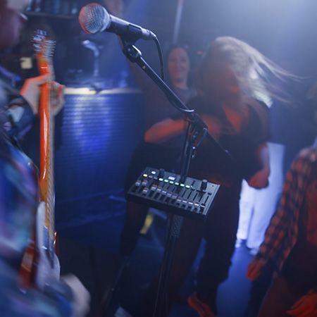 • Вход для внешнего динамического микрофона на разъеме TRS 1/4" для подачи сигналов участникам группы или общения со звукорежиссером