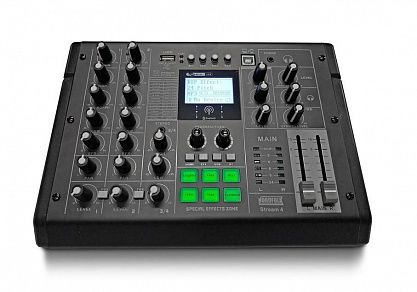 Компактный и стильный микшерный пульт для широкого круга задач где необходимо сведение звукового сигнала: от онлайн трансляций и стриминга до домашней студии, школьного актового зала или домашнего концерта. STREAM 4 имеет 2 входных канала с комбинированными разъемами XLR/1/4" для подключения микрофонного или инструментального кабеля. Дополнительно есть стерео канал для подключения внешних аудиоустройств (телефоны, планшеты и тд) или синтезатора. 3-х полосный эквалайзер на 1 и 2 канале и 2 полосный на стереоканале стерео. Встроенный DSP процессор с блоком отдельных звуковых эффектов и MP3 проигрыватель с входом USB и возможностью записи. Приемник Bluetooth для подключения аудиосигнала и выход на наушники для мониторинга.