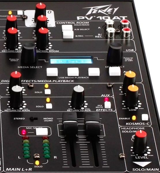 Компактный микшерный пульт Peavey PV 10 AT имеет четыре моно- и два стереоканала, разъёмы для подключения различных внешних аудиоустройств, а также набор большого количества эффектов. Входы этой консоли имеют несколько вариантов подключения, например, комбинированный микрофонный вход на XLR дублируется 1/4”, а стереоканалы 5-6 предоставят вам возможность коммутации через 1/4" RCA или 3.5мм jack. Это очень удобно и делает пульт настоящим универсальным инструментом на все случаи жизни. Кроме того, консоль оснащена фантомным питанием 48 В, USB (тип А и B), Bluetooth 3.0, фирменной эквализацией MidMorph®, имеет 2 канала Antares® Auto-Tune и функцию улучшения низких и высоких частот KOSMOS®. Смотрите видеообзор удобного микшерного пульта Peavey PV 10 AT с функцией Auto-Tune на нашем канале!