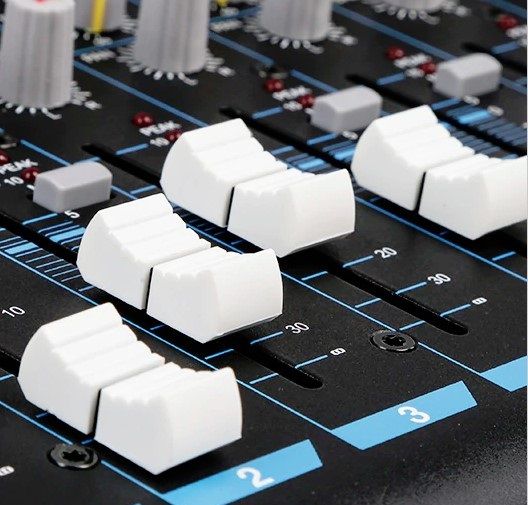 3-х полосный эквалайзер на все микрофонные входа, 2-х полосный на стерео линейки