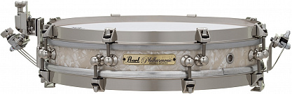 Оркестровый малый барабан Pearl PHP1325/C405 обладает фантастической чувствительностью и кристально чистым звуков. Современные требования к репертуару и среда исполнения часто подталкивают компанию Pearl к дизайну инновационных инструментов. Том Фрир из Cleveland Orchestra в сотрудничестве с дизайнерами Pearl создал новый малый барабан Philharmonic Pancake размером 13 x 2,5 дюйма, чтобы удовлетворить растущий спрос на профессиональные сольные барабаны. Представленные музыкальные задачи были решены с помощью множества решений, затрагивающих практически все аспекты конструкции барабана. Во-первых, для получения тихого звука и максимальной чувствительности требовалась чрезвычайно компактная 8-слойная оболочка из клена размером 13 x 2,5 дюйма. Эта уникальная конструкция корпуса привела к созданию новой системы одноточечных проушин специально для Philharmonic Pancake, также были внесены особые изменения в стрейнер. В качестве струн использована тонкая музыкальная проволока с запатентованной системой регулировки натяжения.
